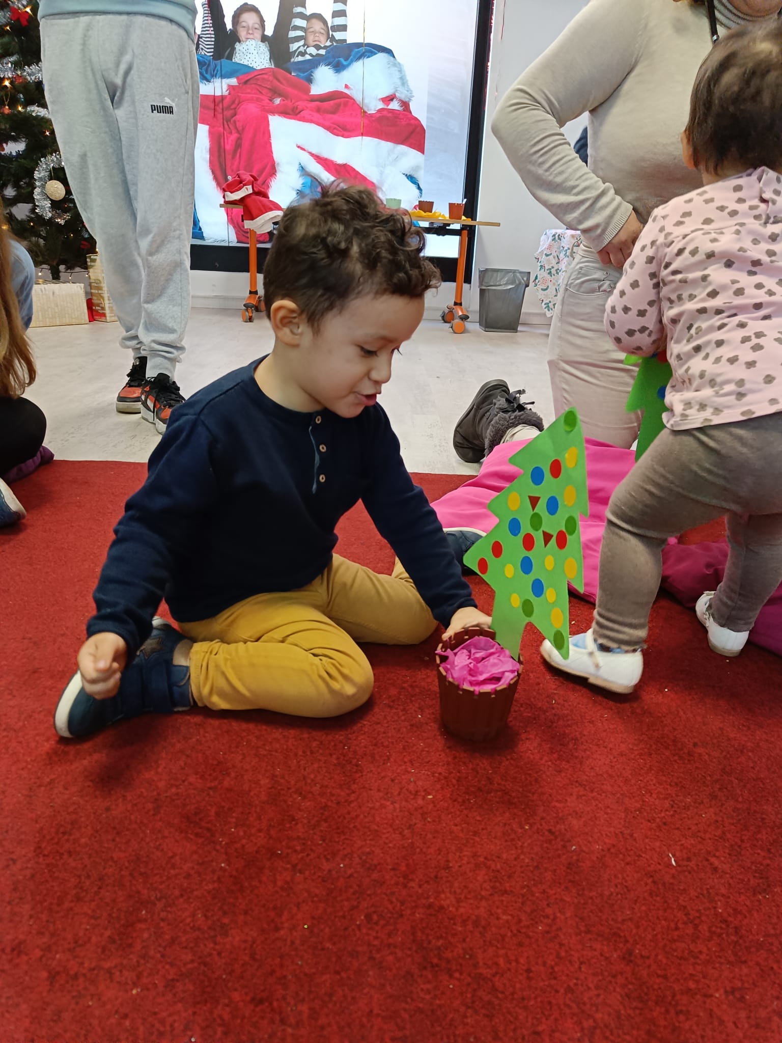 Primer, els més petits van gaudir de la festa escoltant la història del Grinch i decorant els seus petits arbres que van quedar d’allò més bé. Són uns artistes!