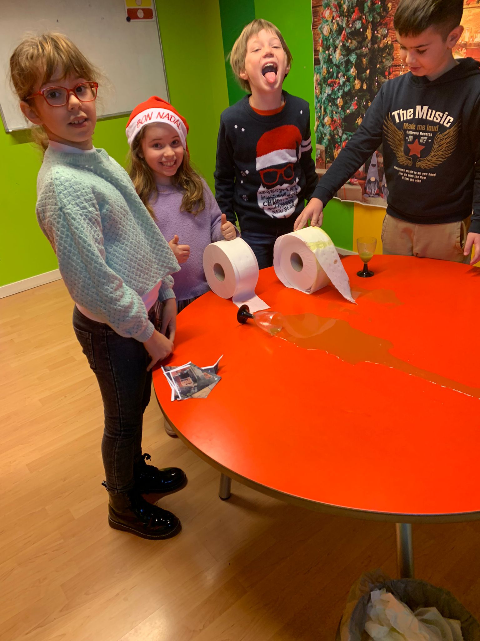 Després, vam descobrir que el Grinch havia sabotejat la fàbrica de Santa i havia embrutat tota la seva casa! Quin desastre… Ens vam posar per feina: vam llevar la neu que va deixar el Grinch a l’entrada de la casa, vam netejar el “Grinch juice” que ens va tirar per tota la cuina, vam ajudar al ninot de neu a trobar els seus botons, vam pintar l’arbre de Nadal i vam trobar totes les trampes que el Grinch va deixar a la fàbrica de regals!