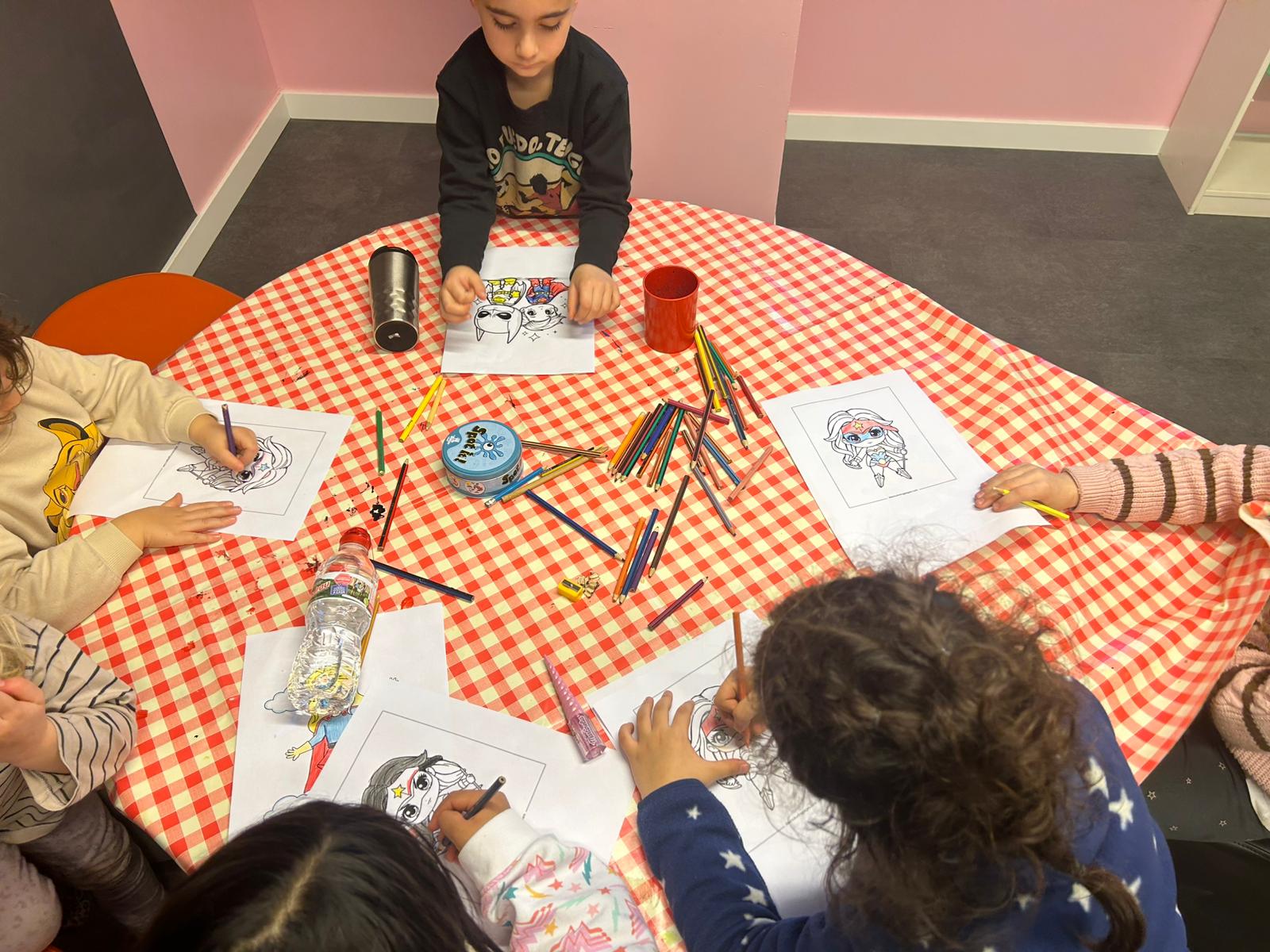 🦸Taller de màscares, on han dissenyat i creat els seus propis complements superheroics.